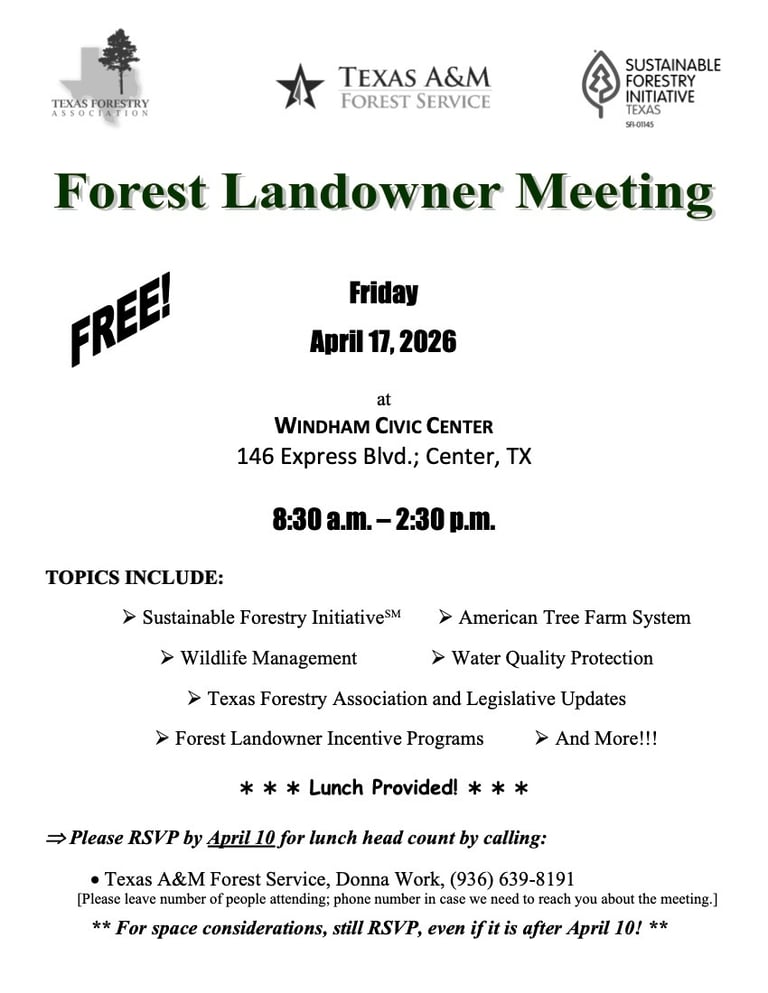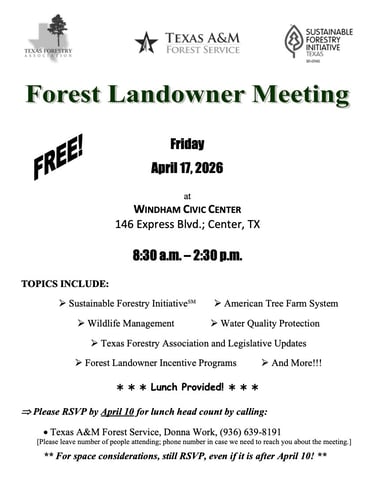 SERVING FOREST LANDOWNERS IN SAN AUGUSTINE, SHELBY, AND SABINE COUNTIES